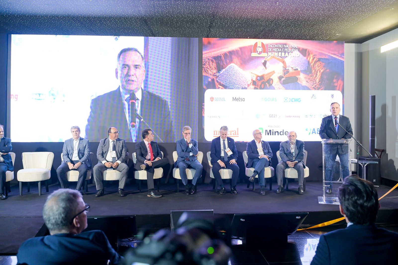 A solenidade de abertura contou com a presença de autoridades como o governador de Goiás, Ronaldo Caiado, o prefeito de Goiânia, Sandro Mabel, representantes do Ministério de Minas e Energia, deputados federais e estaduais, além de líderes institucionais e empresariais do setor.