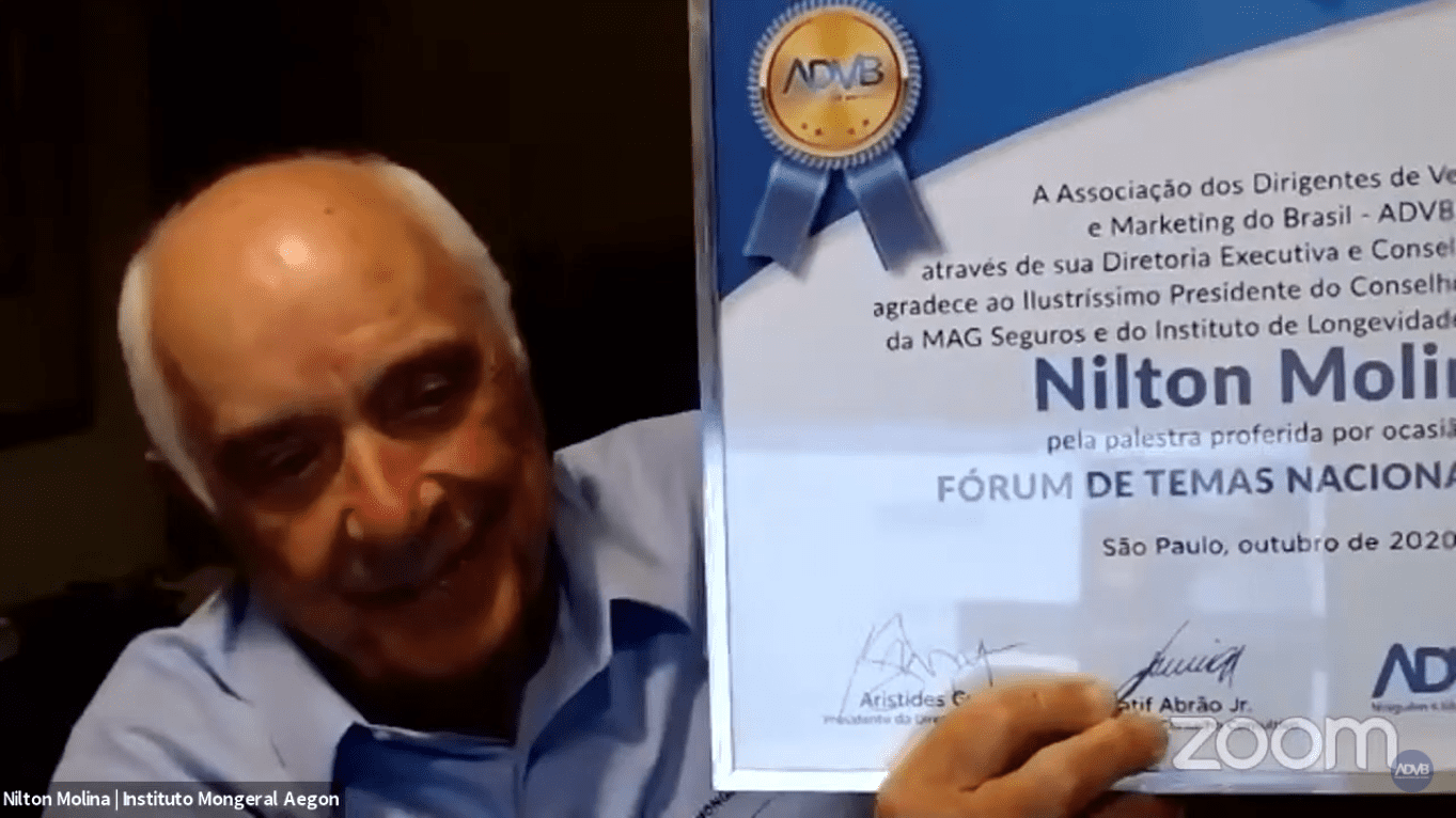 “Quando a ADVB nasceu, há 64 anos, eu já tinha 20. Sou empresário do setor de seguros e esta atividade tem tudo a ver com o tema da longevidade humana”, contextualizou Nilton Molina. Fala da importância do SUS no enfrentamento da pandemia; comenta pesquisa feita pelo Instituto de Longevidade Mongeral Aegon e observou que “os velhos enfrentaram (e enfrentam) muito bem a situação”.