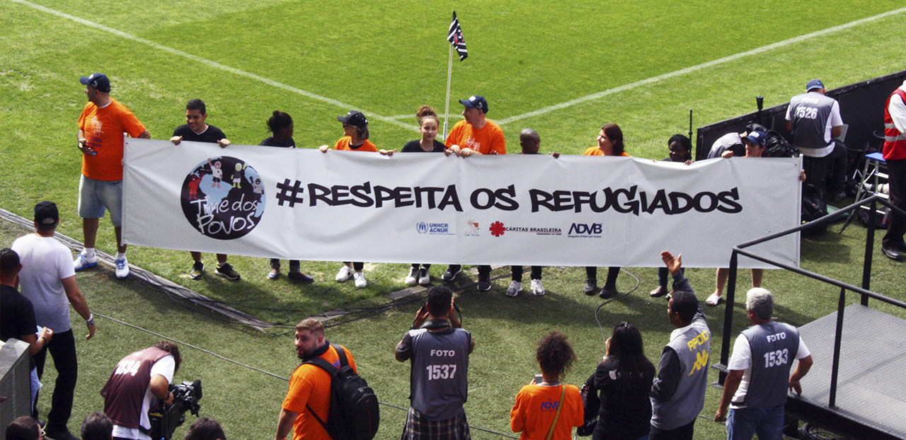 Uma ação com o objetivo de sensibilizar a todos os 35 mil torcedores na Arena Corinthians e a sociedade em geral promovida pelo Corinthians no último domingo (6/5) para o jogo contra o Ceará, levou 18 crianças sírias e outras 26 de nove nacionalidades em campo com a camiseta “Time dos Povos” para alertar sobre a crise humanitária na Síria e a situação de refugiados no Brasil. Na iniciativa organizada pelo Timão em conjunto com o Lar Sírio, Cáritas, Construtora Cury e apoio da ACNUR e ADVB – Associação dos Dirigentes de Vendas e Marketing do Brasil, uma criança síria entregou a bola ao árbitro do jogo junto do finalista no BBB Kaysar, que foi o embaixador do projeto e interagiu com as crianças sírias e de outras nacionalidades. O evento contou com a presença da Chefe do escritório de São Paulo do ACNUR – agência da ONU para Refugiados, Maria Beatriz Nogueira.