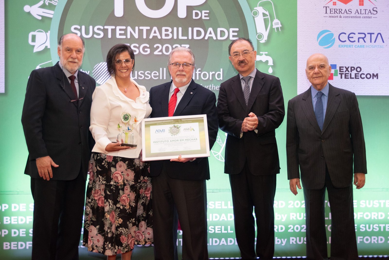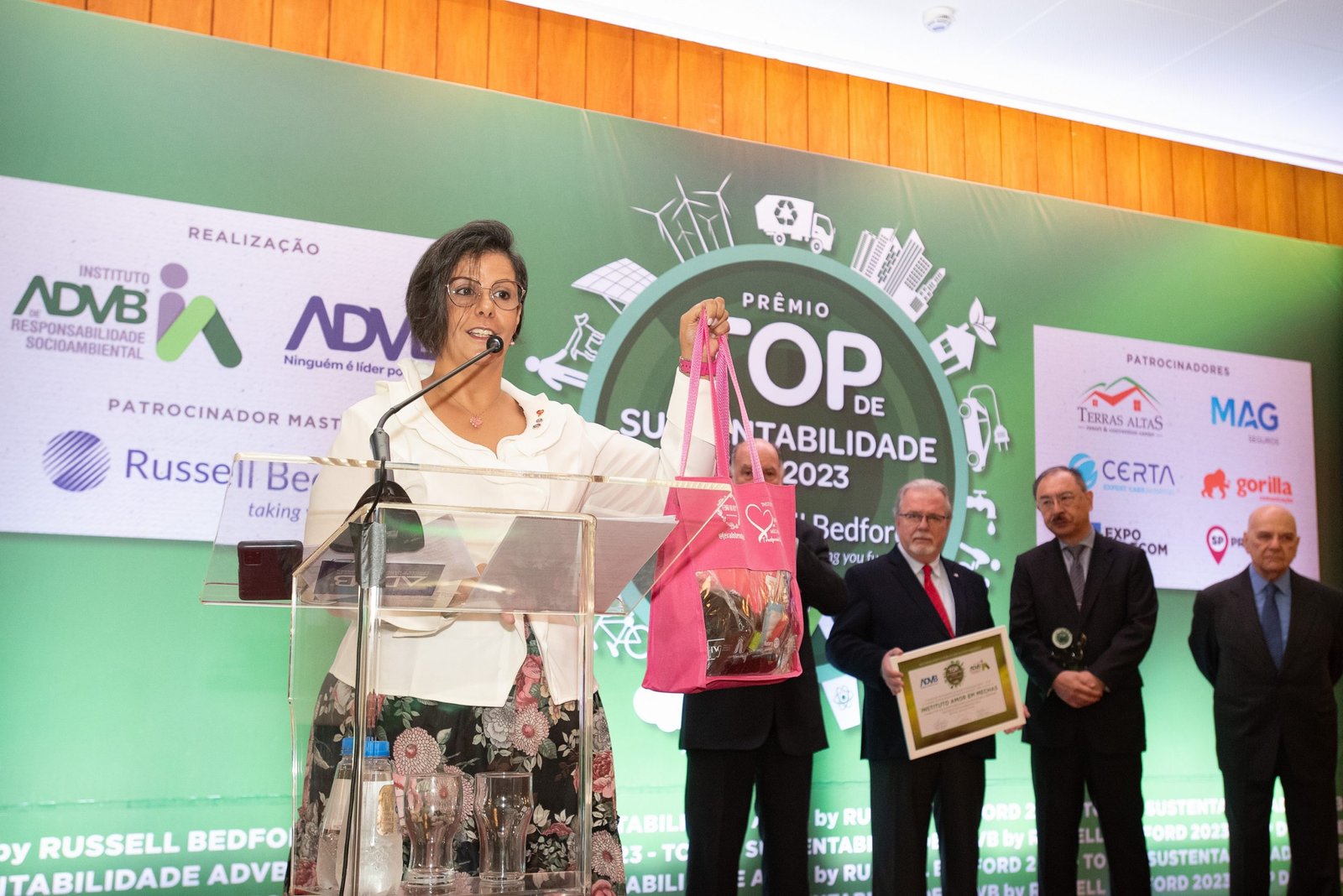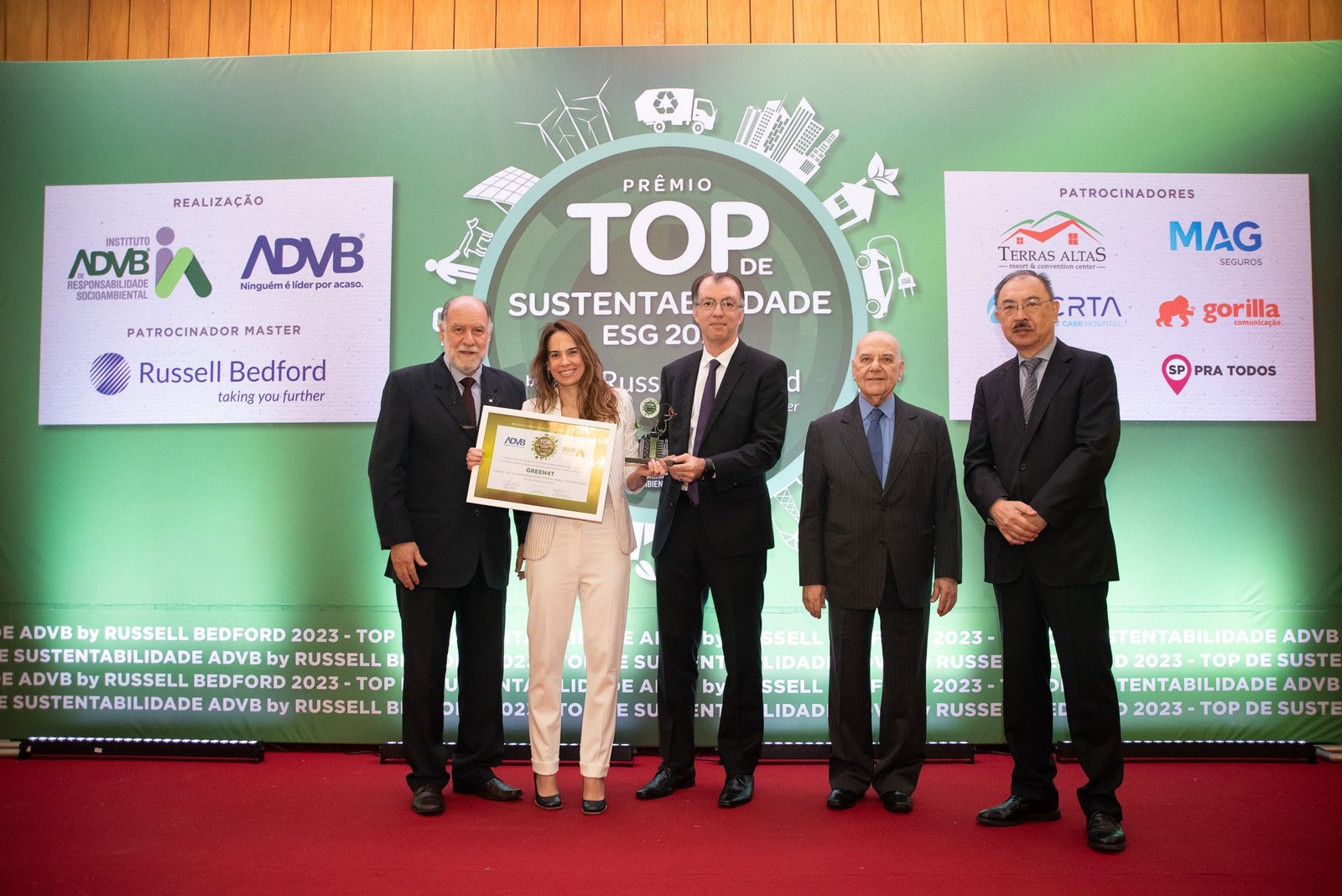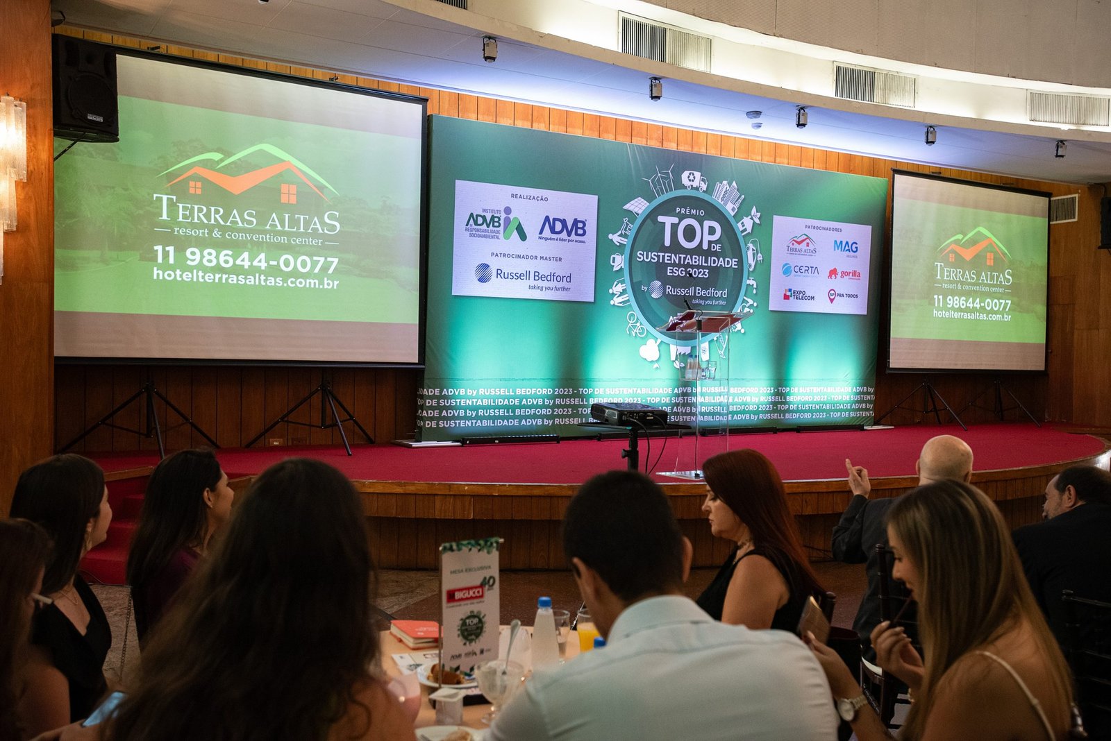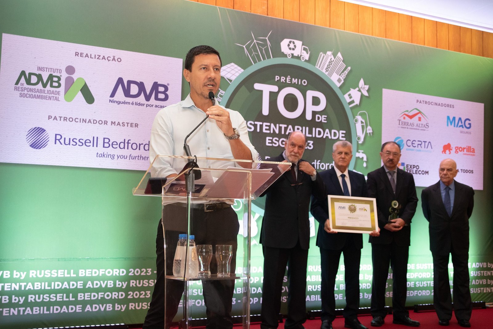 O Prêmio Top de Sustentabilidade ADVB 2023 contou com o patrocínio master da RUSSELL BEDFORD Brasil e com os patrocínios da CERTA Expert Care Hospital, MAG Seguros, TERRAS ALTAS Resort & Convention Center, GORILLA Comunicação, EXPO Telecom e SP PRA TODOS.