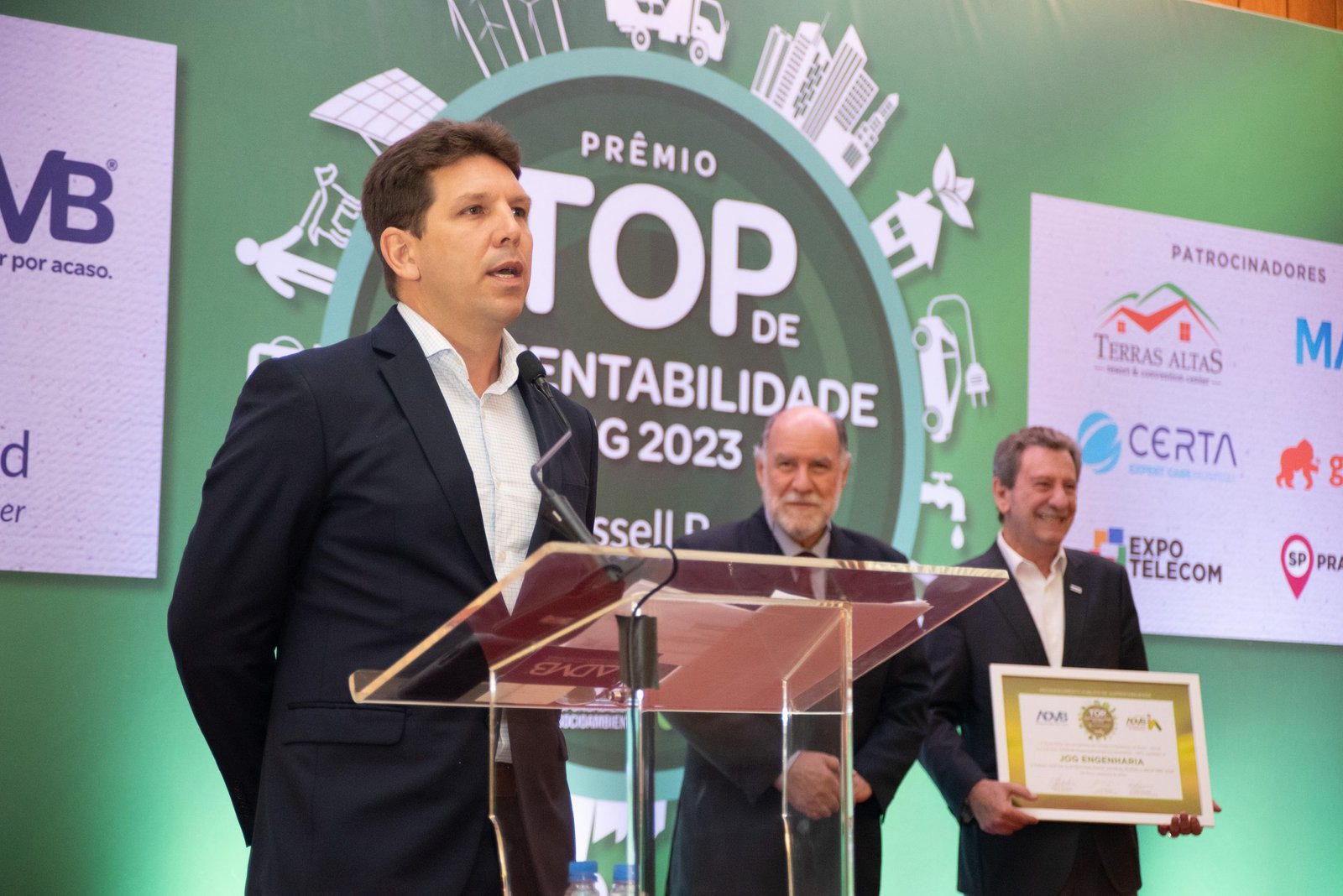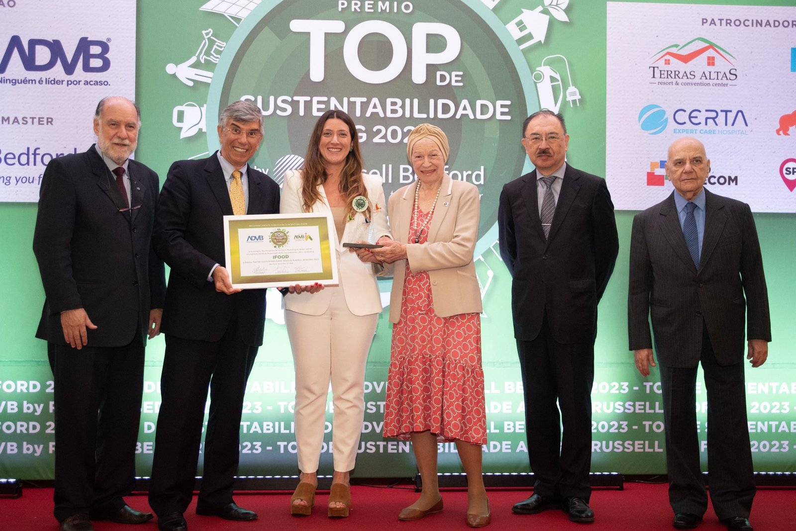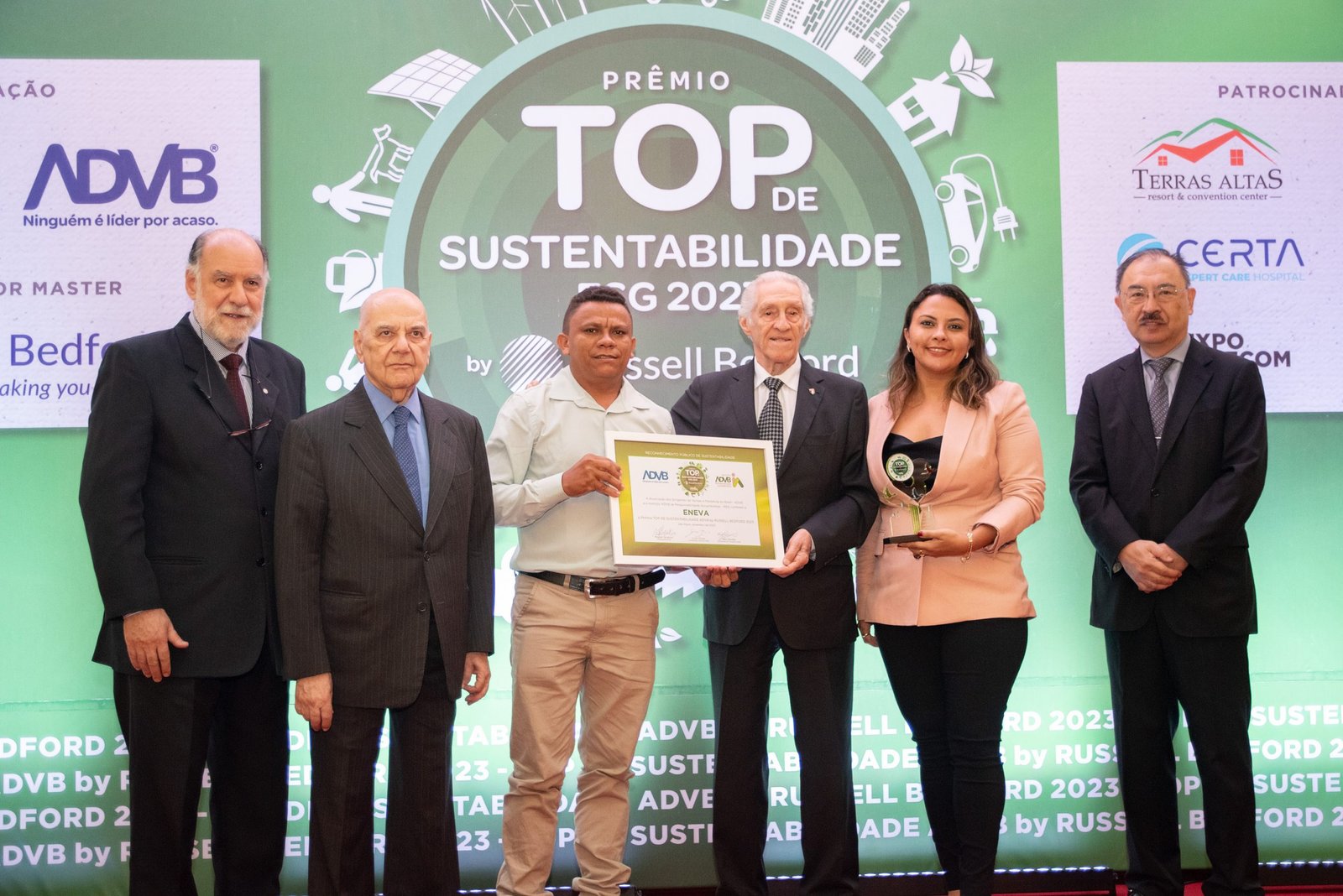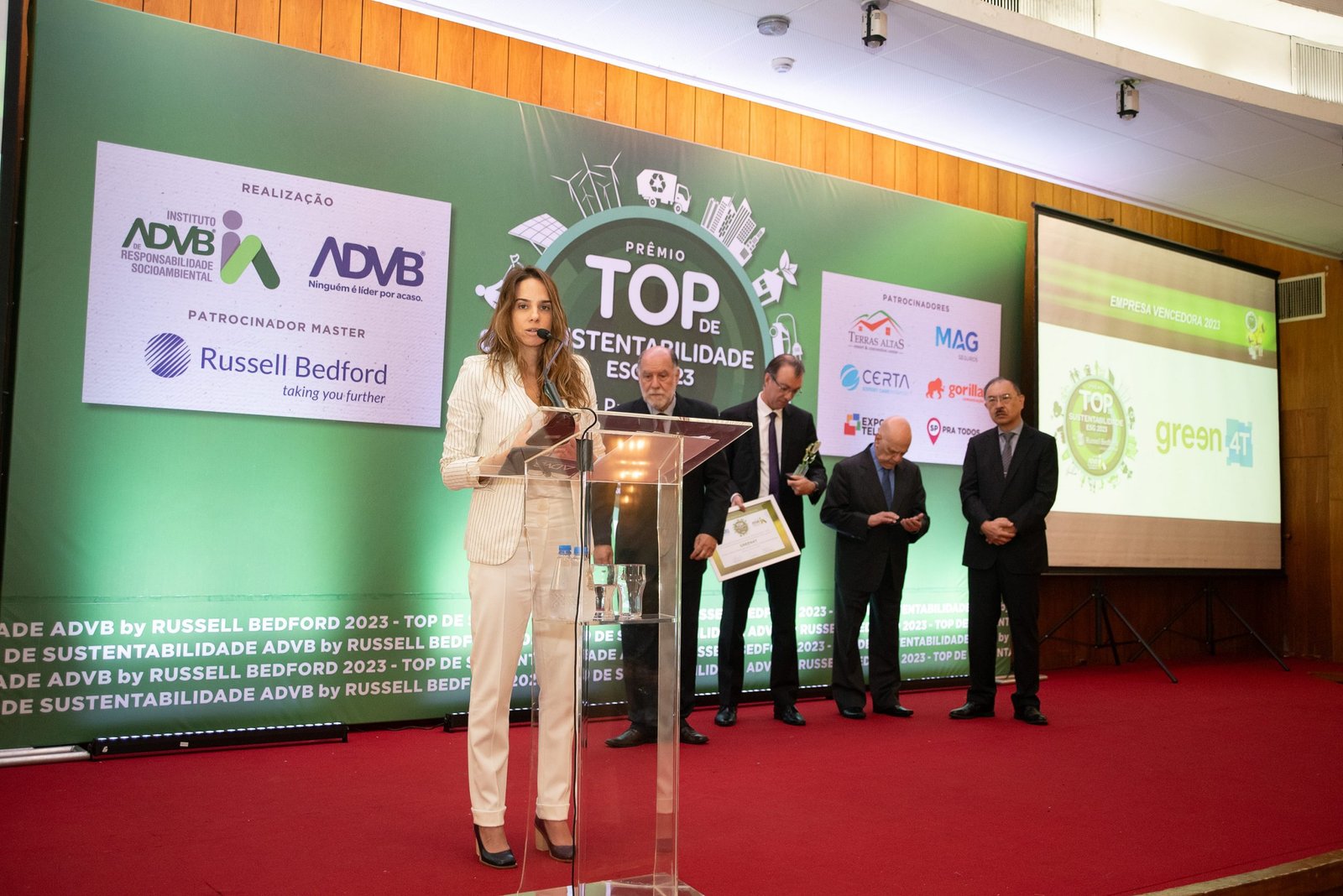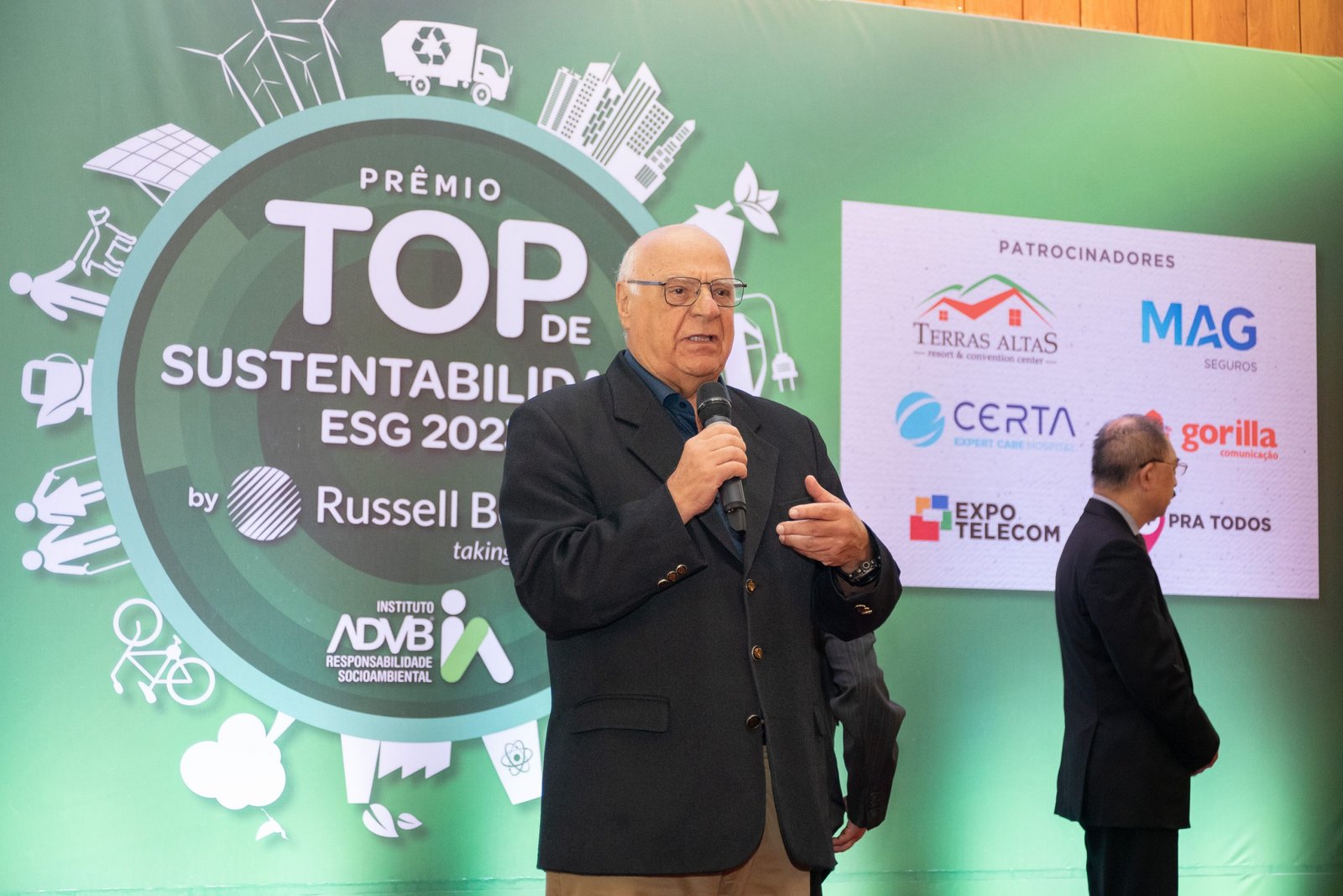 O Prêmio Top de Sustentabilidade ADVB 2023 contou com o patrocínio master da RUSSELL BEDFORD Brasil e com os patrocínios da CERTA Expert Care Hospital, MAG Seguros, TERRAS ALTAS Resort & Convention Center, GORILLA Comunicação, EXPO Telecom e SP PRA TODOS.